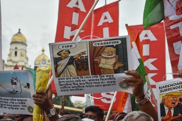 美国耶鲁大学南亚研究讲师苏尚特·辛格8月12日在英国《金融时报》刊文称今年2月,莫迪与特朗普高调宣布到2030年前要将双边贸易额提升至5000亿美元,并暗示将签署新的全面贸易协定。两人当时的亲密互动被视为印美战略合作深化的象征。然而,这一“巨大伙伴关系”没撑几个月就变成“大型翻脸现场”。特朗普先是以印度设置了“繁琐且令人厌恶”的贸易壁垒为由,对印度输美产品征收25%的关税;接着又以其“购买俄罗斯石油、破坏制裁”为由,将关税增至50%,并威胁继续上调。